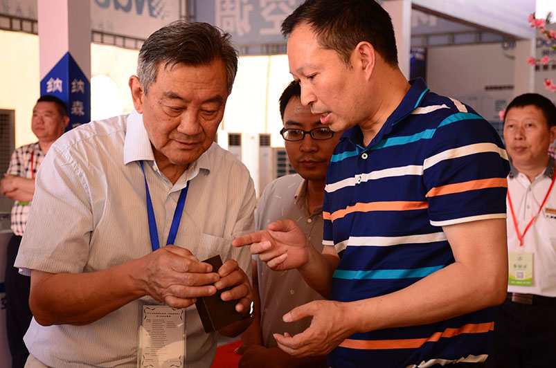 5月28,2018雄安国际绿色建筑产业博览会在雄安新区盛大开幕。原全国政协常委、全国政协民族与宗教委员会副主任、原国家建材局副局长、国务院参事室副主任蒋明麟莅临桃花江竹材展位指导工作。公司董事长薛志成先生亲切交谈并为蒋明麟介绍了桃花江的展位特色与公司户外防腐竹材的产品特点、生产制作工艺及企业运营情况。