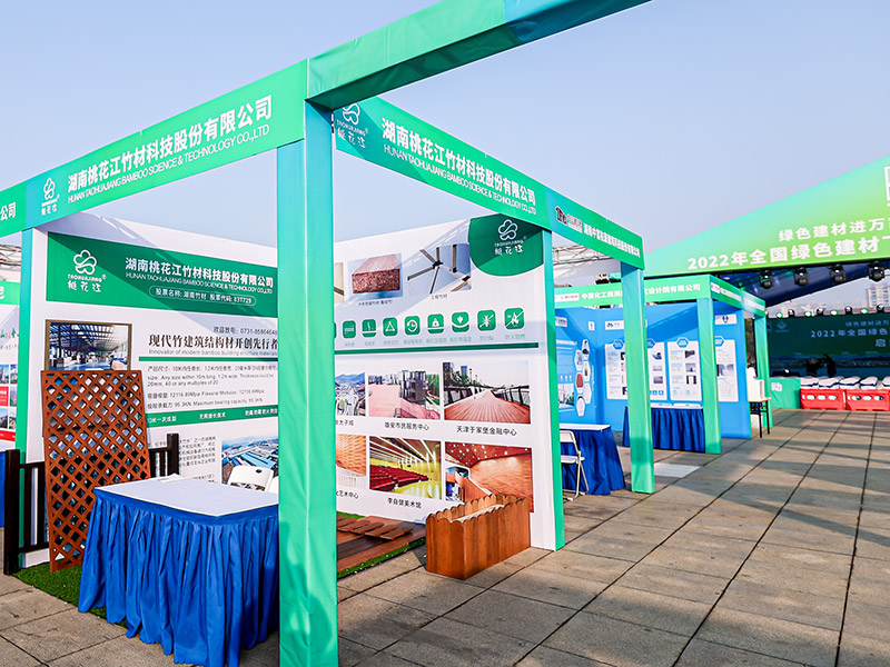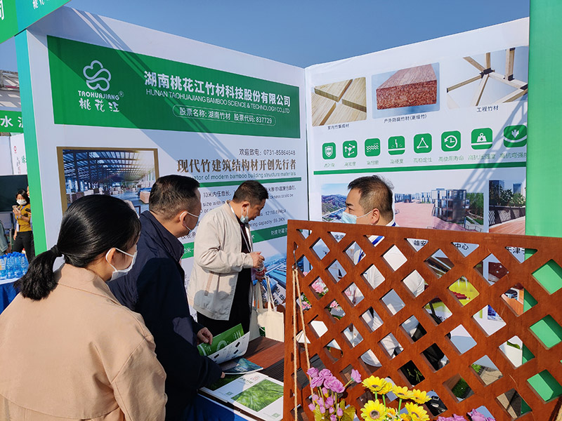 本次绿色建材下乡活动启动仪式及绿色建材展览时间为11月1日—3日,由工业和信息化部、住房和城乡建设部、农业农村部、商务部、国家市场监管总局、国家乡村振兴局六部门指导,湖南省工业和信息化厅、岳阳市人民政府主办,桃花江竹材作为湖南省新材料企业,绿色工厂, 积极响应参与此次活动。领导嘉宾在参观展览时,被桃花江竹材的绿色环保竹材产品吸引,纷纷驻足详细了解,公司现场工作人员进行热情接待,耐心讲解,给现场嘉宾们留下了深刻印象。