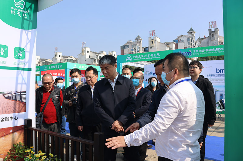 工业和信息化部原材料工业司副司长邢涛,省工信厅厅长雷绍业一行在桃花江竹材展位前认真参观了解
