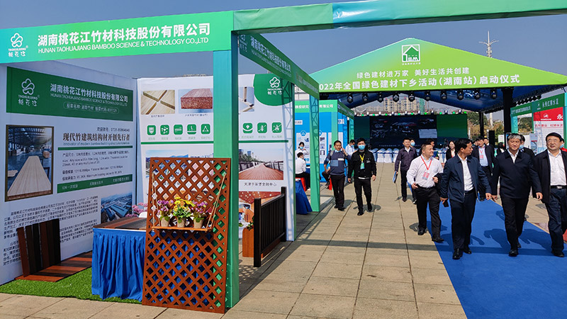 11月1日上午,以“绿色建材进万家,美好生活共创建”为主题的2022年全国绿色建材下乡活动(湖南站)启动仪式在岳阳湘阴县举行。工业和信息化部原材料工业司副司长邢涛,省工信厅厅长雷绍业等出席开幕式。湖南桃花江竹材科技股份有限公司作为湖南省绿色竹质材料代表受邀参加此次活动。
