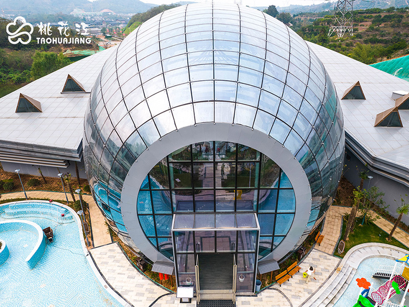 宜都·青林明珠温泉康养度假中心位于高坝洲镇青林休闲旅游区内,占地面积35亩,总投资1.5亿元,于2022年10月28日正式营业。园区中最引人注目的璀璨明珠内蕴藏着由桃花江竹材携手项目方精心造就的室内竹之艺术。